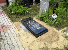 В завершении мы приклеили к ранее установленной подставке новый памятник, тоже прямоугольной формы. Территорию вокруг надгробья отсыпали песком. Это один из самых бюджетных вариантов оформления места захоронения.