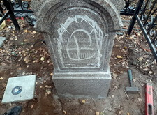 Далее мы подготовили памятник к реставрации: тщательнейшим образом вытерли и вымыли надгробье, удалив грязь и пыль из каждой впадины.