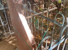 Обжигаем ограждение, параллельно с этим наносим на надгробье новую надпись.
